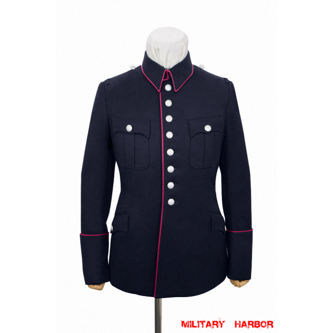 WWII German Fire Police Navy Blue Wool Service Waffenrock Tunic With Pipe
